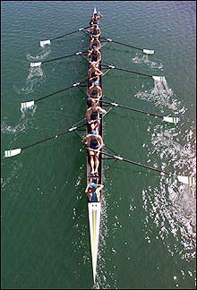 Steve Redgrave won his 5th Gold Medal in a row. He won the best race of the Olympics by 0.38 seconds beating Italy who nearly caught them. The team had two new members, they were Tim Foster and James Cracknell. Foster was due to race in Atlanta in 1996 but had to pull out due to injury. After the race Redgrave anounced his retirement from rowing and was presented with a Gold Pin by IOCC President Juan Antonio Samaranch. Meanwhile the Mens Eights also won the Gold pipping the Aussies at the line